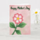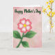This design shows a softly blurred flower centered on the card, glowing gently against a rosy pink, watercolor-like background that feels calm and affectionate ❤️. The bloom has a sunny yellow center, with petals that fade from white near the middle to reddish-pink along the outer edges, like a warm blush. Green leaves and a sturdy stem sit beneath it, also softened so the whole plant looks tender and dreamy rather than sharply outlined. The background stays light and airy, with subtle texture that suggests painted washes and quiet warmth. Across the upper portion, the words “Happy Mother’s Day” appear in flowing cursive-style lettering, set in a deep forest green that stands out clearly. That crisp text above the hazy flower creates a sweet contrast, like a gentle message spoken clearly in a soft room 🌼. The composition leaves plenty of open space around the flower, keeping the focus on the bloom and the greeting. The petals show a smooth gradient from white at the base to rosy red at the tips, with the yellow center glowing near the middle.