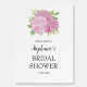 This watercolor bridal shower welcome sign features features a watercolor pink hydrangea flower bouquet. Personalize it with the bride's name and bridal shower date. This poster is part of a collection featuring a range of matching bridal shower and wedding products. Please visit our store to see the full collection.