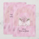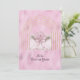A beautiful pink foil background with a set of gold arches enclosing an image on pink hydrangeas on a white envelope.