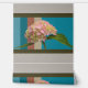 The design features abstract fine art of shades of aqua blue, grey, stone brown, and grey colors along with golden hearts and pink hydrangea flowers - all presented in an elegant striped geometric pattern.