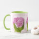 Decorate your kitchen for the spring and summer season with flower printed coffee mugs. This coffee mug features a pastel pink and white striped background with an overlay of pink hydrangea flowers. Buy for yourself or give as a gift to that special someone. The color combination with pretty flowers makes this mug a perfect gift for Mother's Day or another occasion.