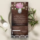 Amaze your guests with this elegant all in one wedding invite featuring a vintage mason jar and beautiful hydrangea flowers on a rustic barn wood background with detachable RSVP postcard. Simply add your event details on this easy-to-use template and adorn this card with your favorite photos to make it a one-of-a-kind invitation.