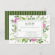 This charming and elegant RSVP card with beautiful, wispy, multi-hued pink hydrangeas and stunning green foliage and coordinating green striped back is perfect for enclosing with your invitations. Your guests will find it easy to respond to your wedding. It's an excellent choice for any spring or summer bride. You can easily make it your own by selecting Personalize this template and typing in your response deadline. In seconds you will see your unique and stunning RSVP cards!