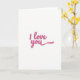 This card shows the words “I love you” centered on a plain white background. The text is written in flowing cursive letters in a magenta-pink color, so it stands out right away 💘. A soft gray shadow sits just behind the letters and gives them a slight lifted look. The last word, “you,” ends with a long curved tail that sweeps out to the right, like a gentle flourish. There are no other pictures or objects, which keeps all the focus on the message. The overall look feels romantic, calm, and direct, like something you’d say when you really mean it ❤️😘. Share it to help pass along your Valentine’s Day feelings in a simple, caring way.