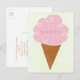 Pink ice cream cone, postcard party invitation. Affordable card for girl's birthday or teen's summer party. Customize with text on the back. Lines provided adding mailing addresses.