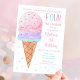 Pink Ice Cream Fourth Birthday Invitation