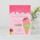 Pink Ice Cream Themed Girl's First Birthday Party Invitation