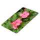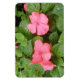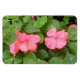 This awesome magnet features a photograph of two pretty pink impatiens flowers and the surrounding foliage. The petals shine and the leaves are wet from a rainstorm.