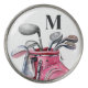 This cute monogram golf ball marker, divot tool, and bottle opener combo features the top of a blush pink watercolor golf bag with clubs sticking out for a simple, modern look. A single initial monogram appears in the top right above the clubs for a personalized touch. The soft watercolor style with subtle gray accents keeps it chic and feminine. Both functional and stylish, it’s perfect for marking your ball or fixing divots on the green. A thoughtful gift for the lady golfer in your life—great for Christmas, birthdays, Mother’s Day, or any special occasion.