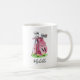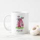 This cute ceramic mug features a stylish pink watercolor golf bag filled with clubs, sitting on a patch of green grass. The design appears on both sides of the mug for easy viewing from any angle. A simple serif initial monogram is placed directly on the bag, seamlessly blending into the artwork. Beneath the monogram, the full name is shown in elegant script typography for a personal touch. The monogram is currently in a dark gray, almost black, to match the bag’s accents, but you can change it to any color you prefer.
