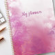 Planner with a beautiful pink ink marble design on the cover front and back with gold details and veins.