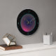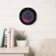 A round moon shape, featuring a pink iridescent hue, and green tinges.This is on a border of black.Green numerals complete this striking clock.Available in square shape also.