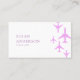 Bright and stylish, this feminine business card features a group of pink airplane silhouettes rising from the right, balanced by elegant typography on a clean white background. A perfect choice for travel agents, flight professionals, or aviation lovers seeking a fun and professional look.