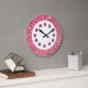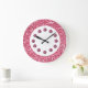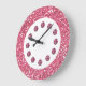 Pretty printed pink gemstone bling wall clock with pink rhinestone jewels and glitter on the clock face in this decorative wall decor design for your kitchen, dining room, dorm room, or any room in your house you want to add some color and character. Designed for ladies or teenage girls who like to make a splash with their decor.