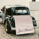 A custom pink wedding classy "Just Married" fabric car banner sign perfect for your wedding. This "Just Married" car banner sign used script calligraphy script perfect for any wedding. Use the words "Just Married" or customize them to suit your wedding. Order the size based on your vehicle.