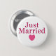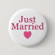 Cute pink just married quote saying with pink heart. A sweet newlywed design for the newly married couple, this pink wedding themed graphic would make a cool bridal shower gift for the bride to display on the honeymoon or in the couples home.