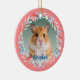 Pink Keepsake Photo Holiday Wreath Ceramic Ornament