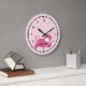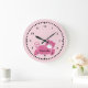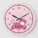 Personalize this cute pink gingham kitty cat wall clock for a nursery with baby's name. Just edit in the easy zazzle text editor. Created in part with graphics from www.resaleclipart.com and Trina Clark at www.digiscrapkits.com