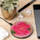 This round, blush and hot pink rose feminine phone charger is an artistic watercolor edit of a close up photo of this beautiful garden flower. Tiny "paint spatters" of white against the soft pink petals and green leaves complete the effect and add a little whimsy to make this gift truly one-of-a-kind.