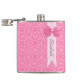 Pink Lace Pattern With Ribbon Bow Design and Name Hip Flask