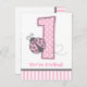 Cute 1st birthday design with a pink and gray ladybug flying over a big number 1 filled with a pink and white polka dot pattern. Add your own custom text. PinkInkArt original!