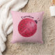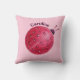 Personalized pink ladybug girly pillow with a cute watercolor illustration depicting a spherical abstract ladybug with lots of white dots in pink, purple and blue.