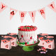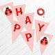 Watercolor Ladybug Happy Birthday Pennant Banner in Light Salmon Pink.