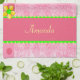 How adorable this is. Pretty pink ladybug on a pink damask background, yellow flowers on a pink border and YOU customize the name.