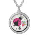 Adorable hot pink ladybug sits on a polka dot background on this round sterling pendant necklace. Chain included. Personalize with your own monogram in the easy Zazzle text editor. Cute whimsical font.