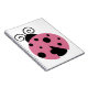 Cute pink ladybug with black spots and curly antennae. Customize by changing background color.