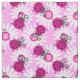 Pink ladybugs ladybirds flowers graphic pattern fabric
