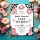 Plain white envelopes are included with paper invitations and will come to fit the invitation size you select. If you don’t need the envelopes, you may choose to not receive them by selecting the dropdown below "Envelopes" and choosing "None." If you’d like to have a design on your envelopes, you can browse all of these available envelopes to find the design that complements your Pink Last Rodeo Bachelorette Invitation.