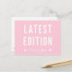 Announce a new baby girl with this humorous pregnancy announcement light pink postcard featuring the words "Latest Edition Coming Soon" in white.
