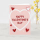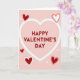 This Valentine's Day card features a large white heart in the center on a soft blush pink background. Inside the heart, the words “HAPPY VALENTINE’S DAY” are printed in deep red serif letters that stand out clearly. Around the edges, there are many smaller hearts, with some filled in dark red and others shown as red hearts with dashed white outlines. A few tiny white heart shapes are sprinkled between them like little confetti. The overall look feels sweet and romantic, with lots of hearts framing the main message. The design keeps the focus on the greeting while still adding plenty of cozy detail 💕❤️. Share it with someone special and let them know you’re thinking of them this Valentine’s Day.