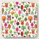pink leaf tree retro owl pattern beverage coaster