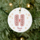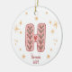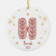 Pink Leafy Monogram H with Stars Pattern Ceramic Ornament