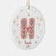 Celebrate your little one's first holiday with this enchanting pink leafy monogram H ornament, adorned with delicate gold stars. Its whimsical design captures the joy and wonder of the season. Personalize it with their name and year for a heartfelt keepsake. Order today to create a cherished family memory