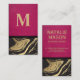 Pink Leather | Black Gold Marble Business Card