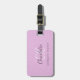 Pink faux leather print as background. Personalize and add your first name, monogram letters and full name on the front. Your contact information on the back. Purple and white text.
