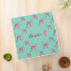 Trendy Pantone pink-a-boo color leopard on a ice-green background.
