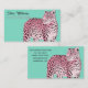 Trendy Pantone pink-a-boo color leopard on a ice-green background.