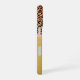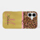 This modern phone case has hot pink and black leopard print against gold foil on top and solid gold foil on the bottom. The two are separated by a faux pink belt. At the bottom you personalize it with your name and initial of your last name.