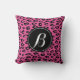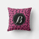 Hot neon pink Leopard print zip throw pillow with monogram. Cute exotic animal spots pattern home decor for girly sofa couch or bed. Customizable background color and monogrammed name initial letter. Personalized gift idea. Classy double sided design. Elegant stylish typography.