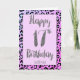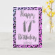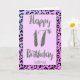 Personalized pink leopard animal print and silver glitter 17th birthday card for her, which says "happy 17th birthday" on the front of the card. Please note there is not actual glitter on this product but a design effect. You will be able to easily personalize the front with her name. The inside reads a birthday message and the back can personalized with the year. This would make a great keepsake for her seventeenth birthday.
