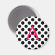Pink Letter A on Black Polka Dots Magnet