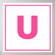 Pink letter U alphabet on white background with pink border. Help your little one learn the alphabet with this letter U design.