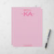 A minimalist monogrammed design in pink and red. The text includes name, address, phone, and email. Easily personalized and edited.