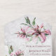 This lovely invitation features delicate pink watercolor lilies on a distressed white background, suitable for many types of weddings - from casual to more formal affairs. The All-in-One wedding invitations are both beautiful and practical by combining the wedding invitation with an easy to remove perforated RSVP postcard. They are also quick and easy to prepare for mailing. Simply address the invitation, fold the back flap and seal with the included clear stickers. Once your guests receive the pre-addressed invitation they simply tear off the perforated RSVP card and drop it in the mail. The addition of the QR code allows your guests to easily access your wedding website for information including reception details and dinner choices!