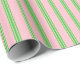 This wrapping paper design features a striped pattern having colors like pink and lime green. It might be fun to use wrapping paper like this when preparing presents being given to celebrate a birthday, a wedding, an anniversary, or some other event.