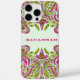 Moroccan Elegant Personalized with your name or anything you shown on a Raspberry Pink and Lime Green iphone Vintage Damask Elegant case